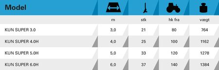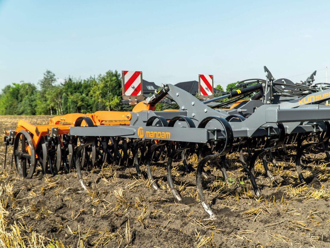 MANDAM KUN SUPER er en allround stubharve med 4 rækker fjedrende tænder og 3, 4, 5 eller 6 meters arbejdsbredde. Den er designet til let og middelsvær jord. Den arbejder med en efterharve før pakkevalsen, hvilket giver et optimalt, ensartet resultat i hele arbejdsbredden. Arbejdsdybden reguleres hydraulisk.