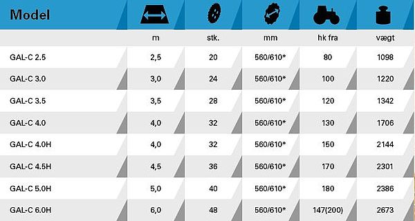 MANDAM´s tallerkenharver er blevet populære i Danmark. Kunderne fremhæver god gennemskæring og opblanding, minimal vedligeholdelse og fair pris som nogle af grundene til at vælge MANDAM tallerkenharver. MANDAM GAL -C er ingen undtagelse. Den fås fra 2,5 - 6 meters arbejdsbredde og kan udrustes med forskellige pakkevalser alt efter jordbundstype og behov. De fleste vælger en Ø600 C-ringsvalse.