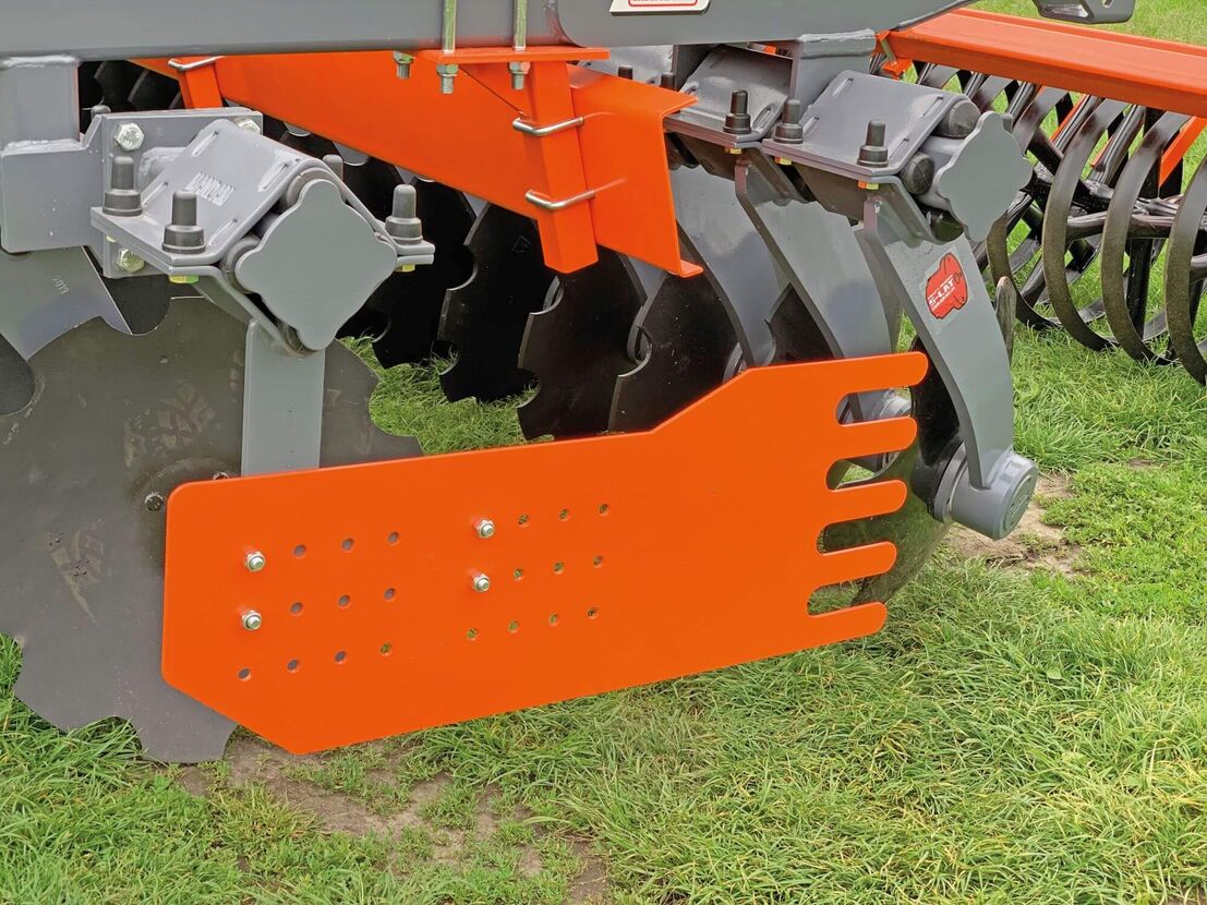 Tallerknerne er placerede i 2 rækker med stor afstand på 1 meter mellem rækkerne. Derved når plantematerialet at falde ned på jordoverfladen, inden den bagerste række tallerkner kommer og skærer materialet over igen. Arbejdsdybden justeres mekanisk. Tallerkenharver anvendes ofte til hårdt stubarbejde. MANDAM GAL -C’s tallerkner er derfor monteret på vedligeholdelsesfrie dobbeltlejer, som er placerede i et robust stålhus med dobbelttætninger. Ydermere er tallerknerne individuelt, gummiophængte, hvilket resulterer i effektiv stensikring.