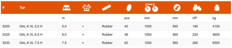 GAL-K XL fås med arbejdsbredder på 5 m og 7,5 m.