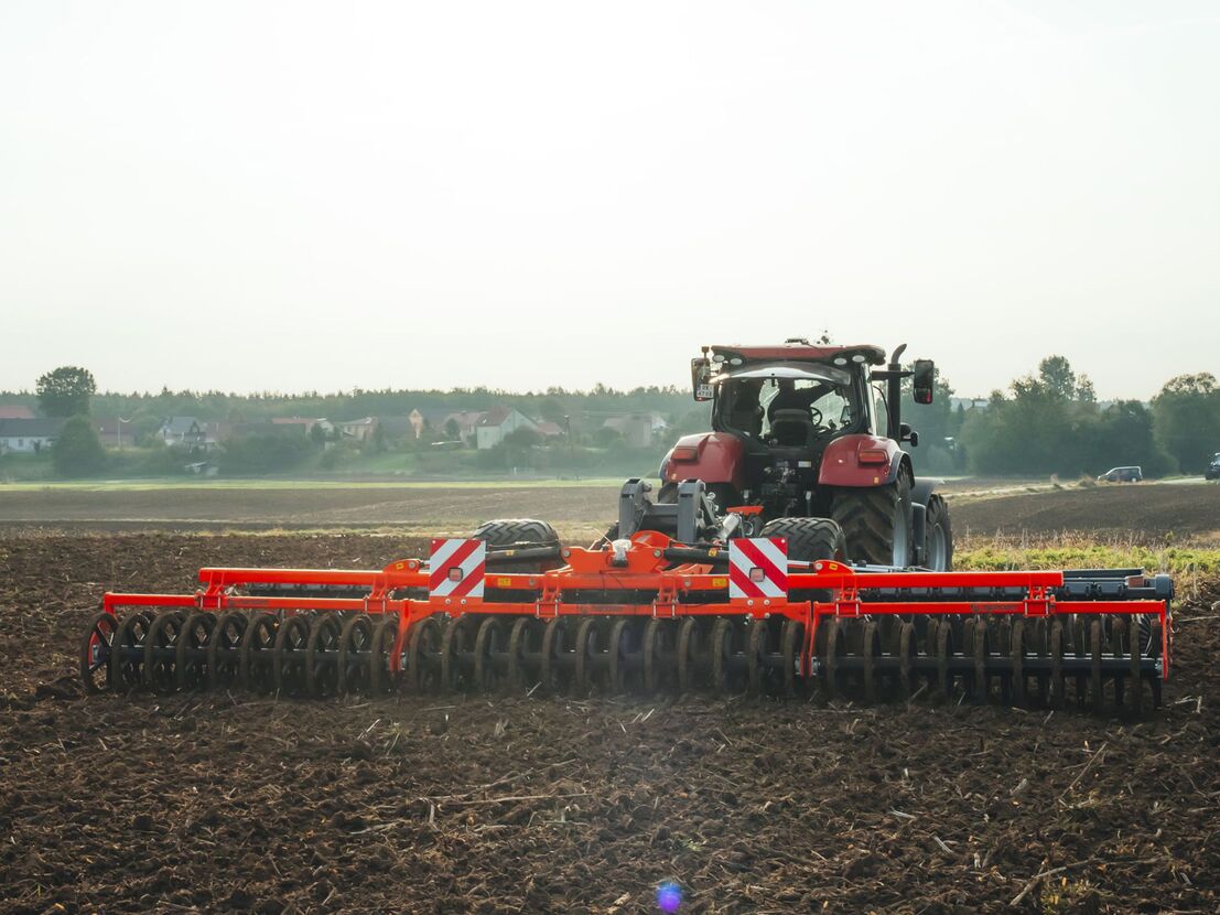 Valsesektionerne har en uafhængig foldemekanisme, hvilket giver bedre balance i hele konstruktionen. Afstanden mellem tallerkenrækkerne er øget til 1000 mm, hvilket forbedrer arbejdskvaliteten under krævende forhold. Hydraulisk dybdestyring, chassiaffjedring og 620 mm brede hjul er standardudstyr.