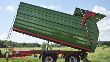 PRONAR T700XL er en robust tipvogn med forstærket containerkasse og læssekapacitet på næsten 18 tons eller 26,6 m³. Den har hydraulisk bagklap og kører behageligt takket være dens tandem-affjedring med 4 parabolske fjedre. Bremsesystemet er 2-strenget (pneumatisk eller hydraulisk) og vognen er lovpligtigt udrustet med foldbart underkørselsværn. Vognen kan leveres med ekstra høje græssider.