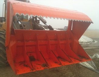 Sauerberger EG strøskovle udstrør løsvarer som sand, strå op til 15 cm, fiberstrø og savsmul ved hjælp af et gummibånd i bunden af skovlene/beholderne. De kan leveres med forskellige monteringsbeslag til minilæssere eller 3-punktsophæng og fås med beholdere fra 0,8 til 1,8 m³.
